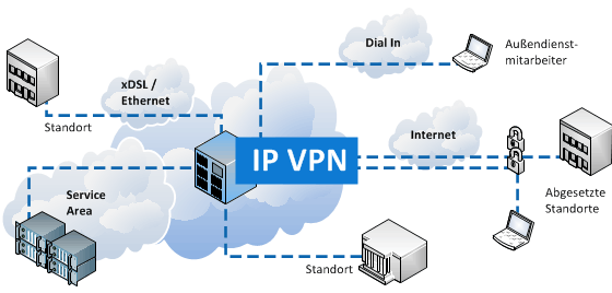 Nahezu jede auf dem Markt befindliche Anbindung an das öffentlich Internet kann für die Standortvernetzung mittels VPN (Virtual Private Network) verwendet werden. So sind die Bandbreiten nur durch die Internetanbindung der einzelnen Standorte abhängig. Die per VPN übertragenen Daten sind vor Zugriffen Dritter gekapselt, so dass ein hohes Maß an Sicherheit und Datenschutz gewährleistet werden kann.